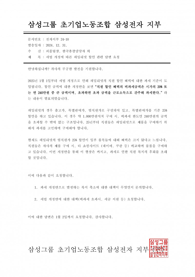 패밀리넷 과세 관련 공문