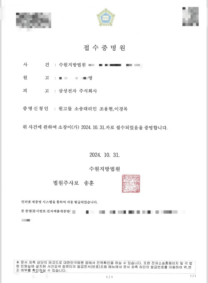초기업노동조합 삼성전자지부는 통상임금(고정시간외근무수당, 귀성여비, 개인연금) 관련된 소송 접수를 10월 31일 완료하였음을 안내드립니다.