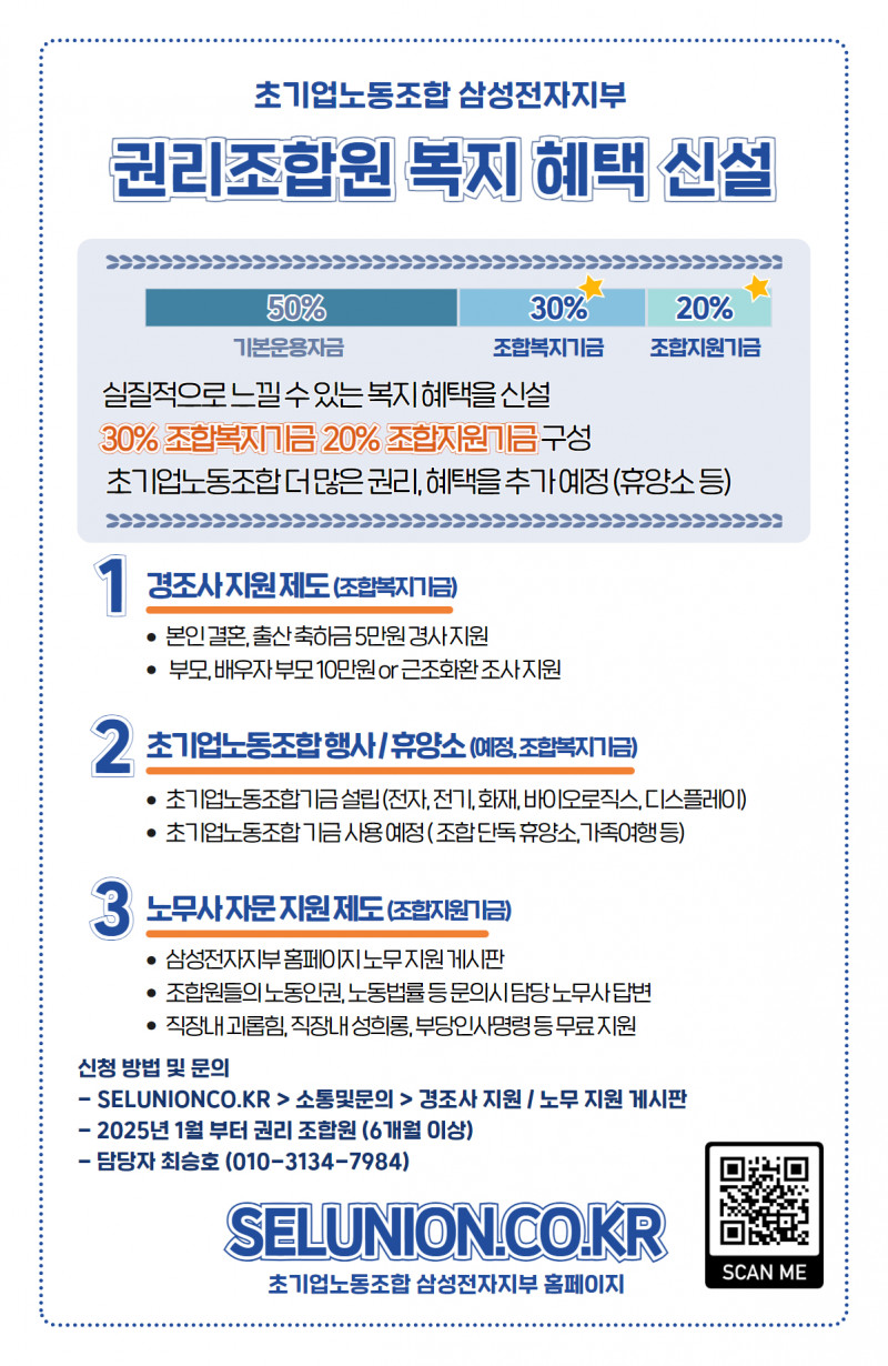 자세한 내용은 소통 및 문의 > 경조사 지원 / 노무 지원 게시판을 참고 부탁드립니다.